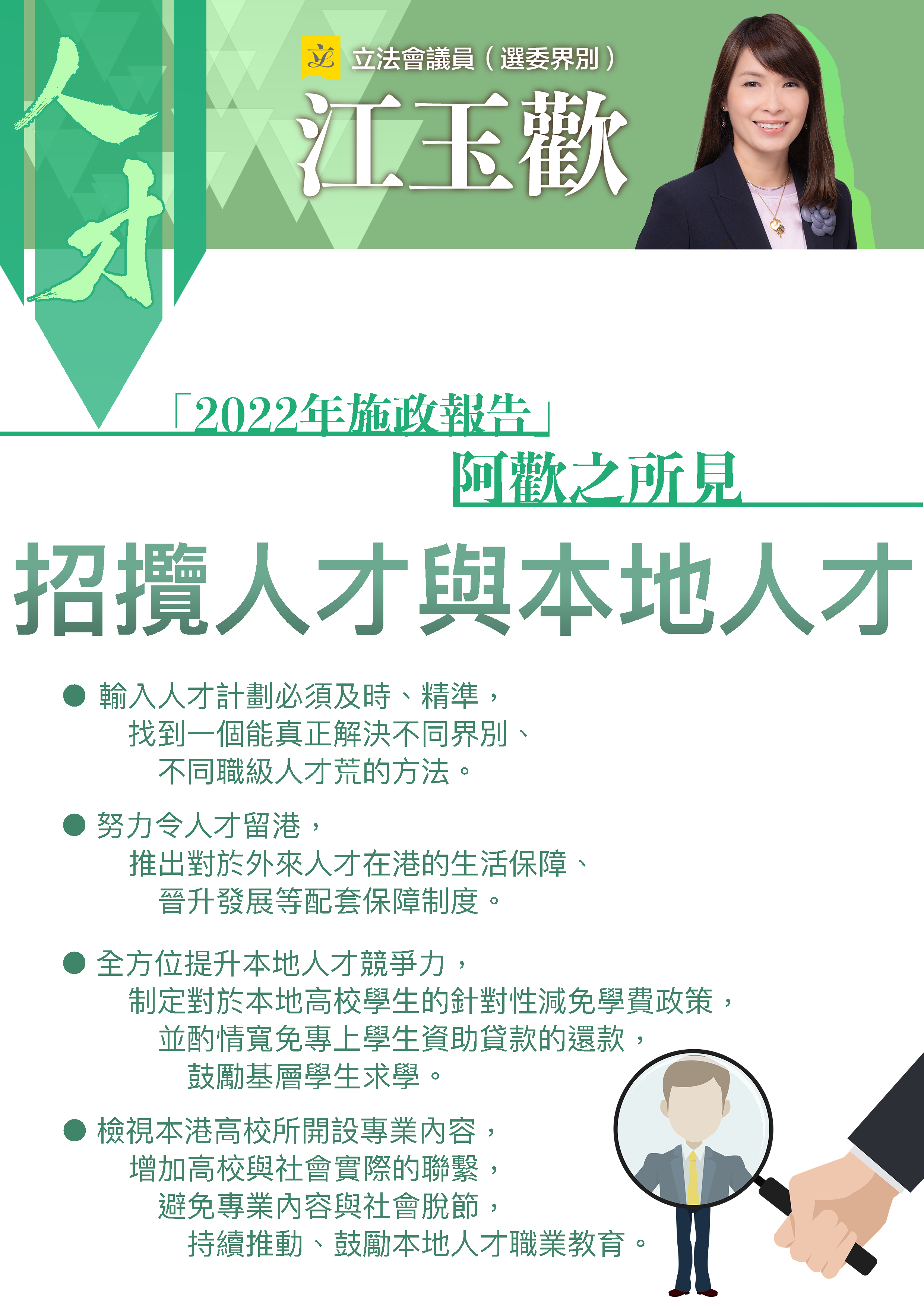 以下是阿歡連日就施政報告致謝議案提出的重點。期待政府能夠在說好香港故事之餘,勇於找出及面對各種深層次問題,有決心找出擊破問題方法。